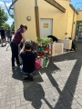 Im Anschluss ging es auf den Spielplatz, der sich für den Tag in einen kleinen Verkehrsparcours verwandelt hatte. Mit Laufrädern und kleinen Fahrzeugen durften die Kinder selbst ausprobieren, wie man sicher durch den „Straßenverkehr“ fährt. Unterstützt von den Mitarbeitenden der Verkehrswacht und den Erzieherinnen konnten sie spielerisch das richtige Verhalten im Straßenverkehr üben.